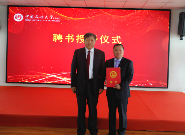 隨后,郝芳校長代表中國石油大學(xué)(華東)向我司董事長張新功頒發(fā)兼職教授聘任證書。